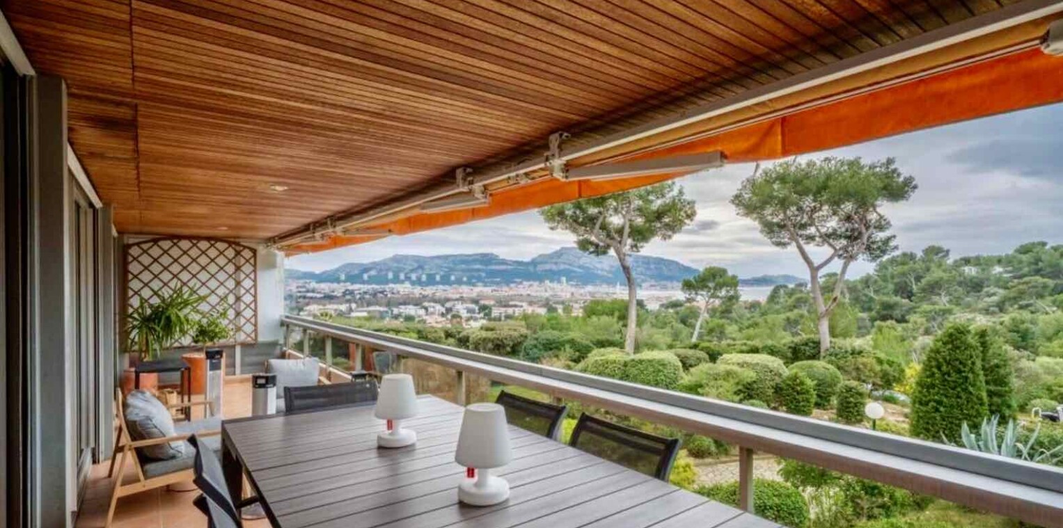 Au sein de la résidence la plus exclusive de Marseille, découvrez ce superbe appartement traversant de 140 m², situé en étage, au calme absolu, bénéficiant d’une vue panoramique sur la mer, la ville et le massif des Calanques.En excellent état et entièrement climatisé, il offre un vaste espace de réception de 56 m², baigné de lumière, prolongé par une large terrasse aux vues spectaculaires.