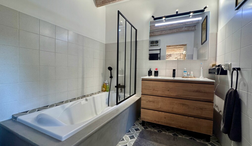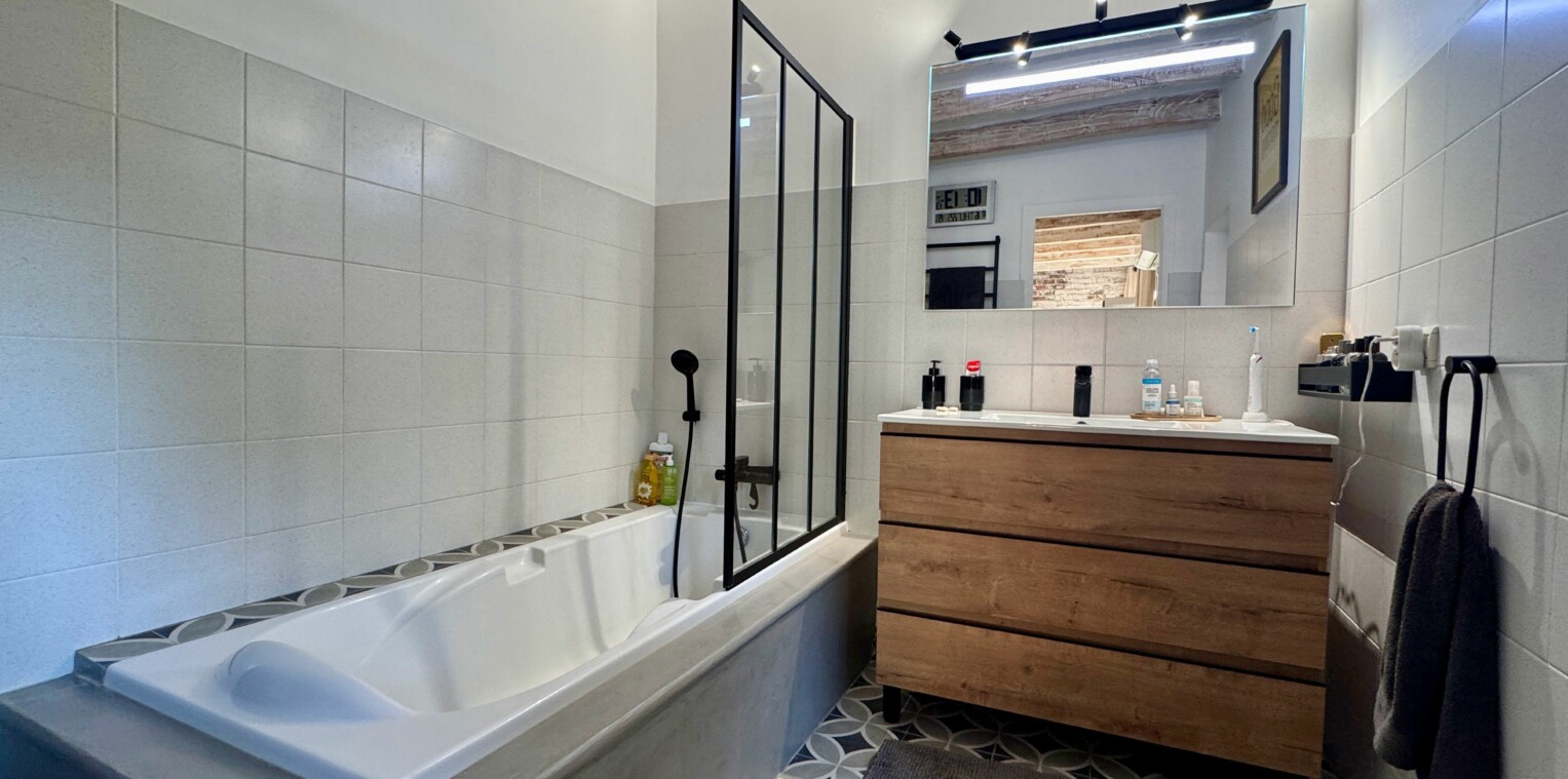Les + : Cachet, parfait état, jardin, piscine, Duplex R+1 avec jardin dans ancienne menuiserie réhabilitée en mini copropriété de 4 lotsDuplex R+1 avec jardin dans ancienne menuiserie réhabilitée en mini copropriété de 4 lotsparking, calme, pas de vis-à-vis
