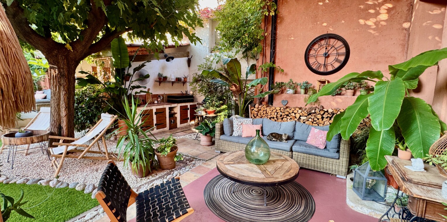 Extérieur : Extérieur de 150 m2 avec jardin, terrasse, piscine, cuisine d'été et dépendance