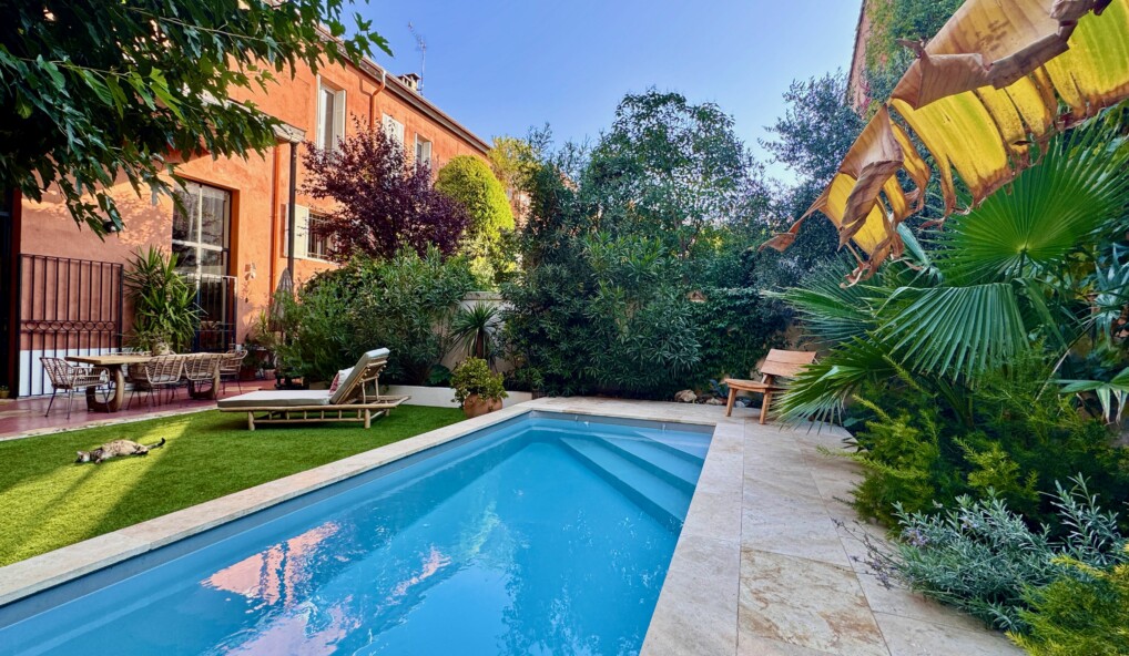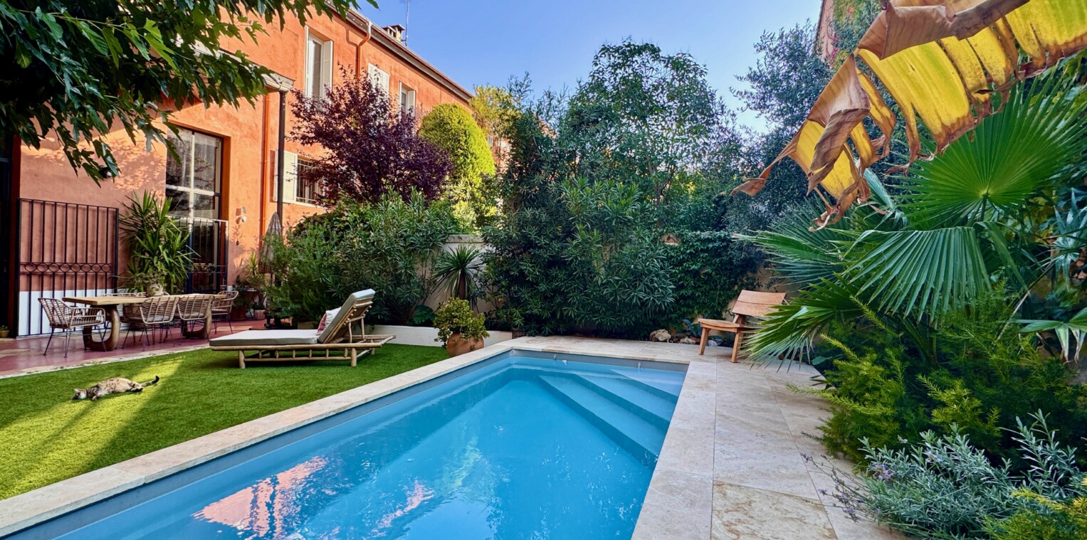Duplex R+1 avec jardin et piscine dans ancienne menuiserie réhabilitée en mini copropriété de 4 lots