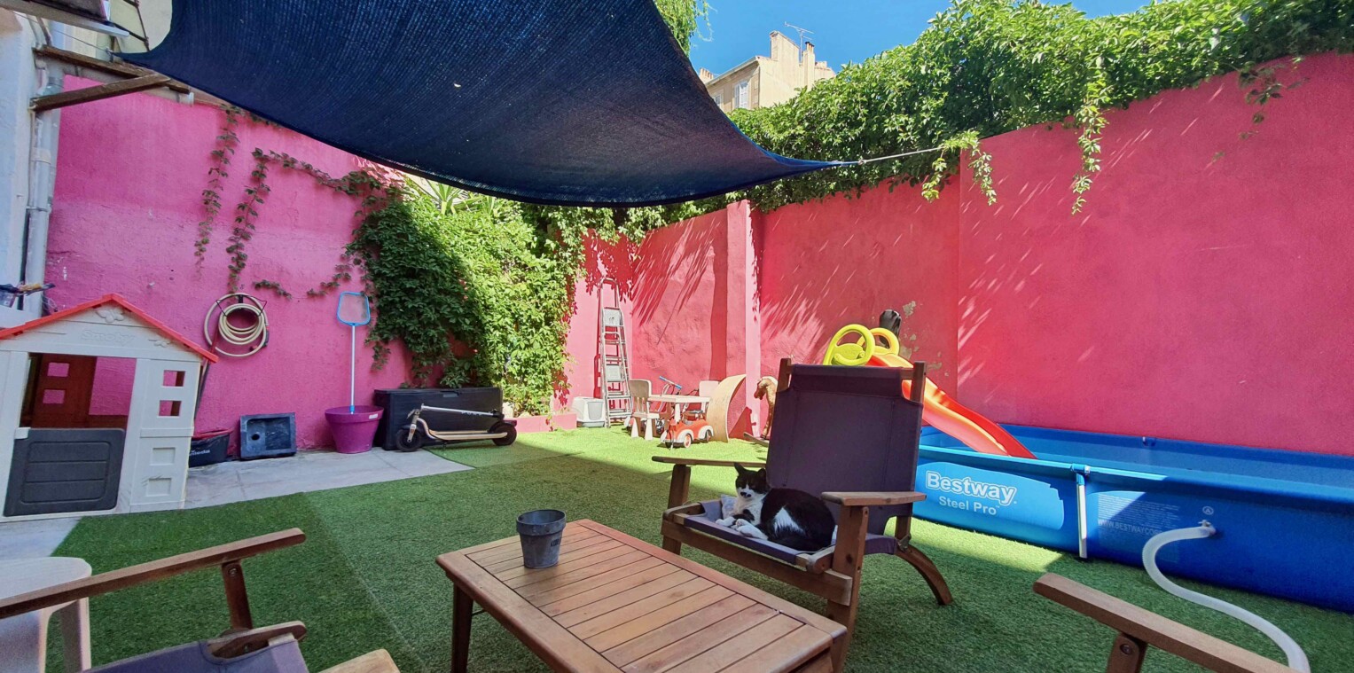 Rue Auguste Blanqui, à 300 m. de la Place Eugène Pierre, à proximité de toutes les commodités (commerces, écoles, bus et tramway), cet appartement ancien de 62 m² (61,35 m² LC) bénéficie d’un extérieur de 38 m² au calme et sans vis-à-vis. Entièrement rénové en 2012, il se situe au rez-de-jardin d’un immeuble marseillais bien entretenu.